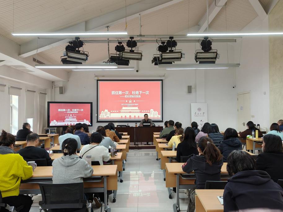 11月3日,继续教育学院邀请纪检监察机构郭振伟开展讲座,讲座主题为《抓住第一次,杜绝下一次——把纪律挺在前面》,继续教育学院党委书记马瑞萍主持,全体教职员工参加。